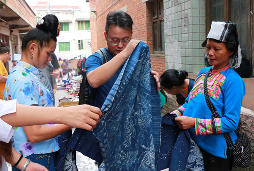 丁老师在黔东南苗侗自治州调研蜡染工艺市场