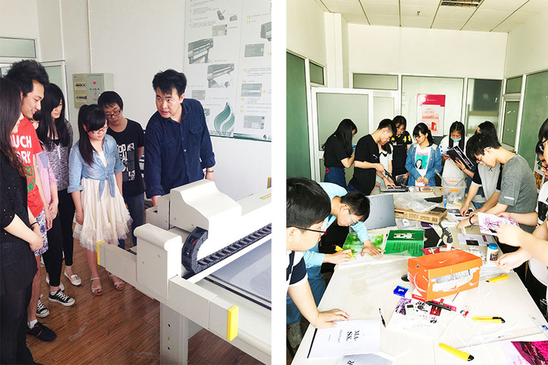 包装设计与制作实训室 企业老师指导学生使用打样机