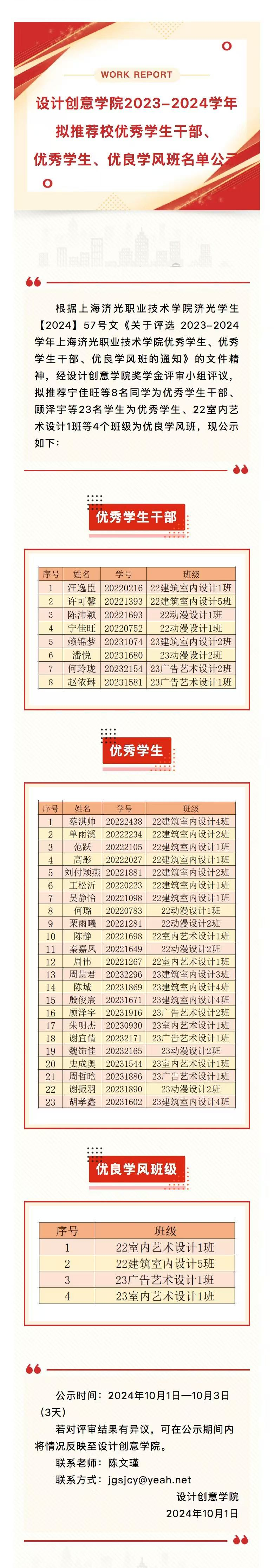 公示|设计创意学院2023-2024学年拟推荐校优秀学生干部、优秀学生、优良学风班名单公示